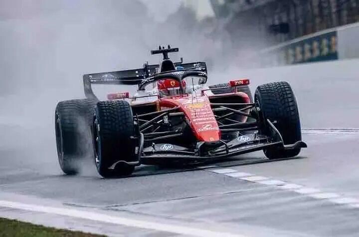 测试第二天,由于赛道持续降雨,复杂的天气条件给各车队带来了不小挑战,当天仅有红牛与法拉利两支车队登场参与测试。上午的测试中,维斯塔潘在5号弯失控冲出赛道,这一意外直接触发了当天的首次红旗。好在这次失误程度较轻,维斯塔潘成功重新控制赛车返回维修区,赛车未出现明显损伤,并未对后续测试造成过多影响。
